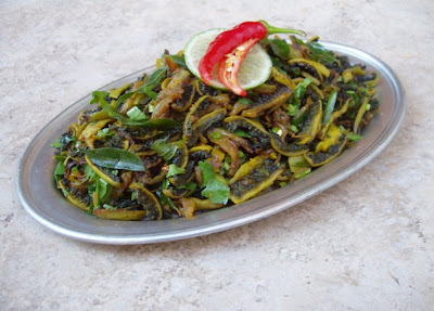 Yesterday I cooked Bitter melon stir fry with some twist from regular cooking method. I used  two different  cooking methods, that is - use of oven  and  stove, two cooking steps and later combined results of both cooking processes. Karela subzi / bitter melon stir fry was more tastier than stove top method.  If you don't like bitter melon, do make  an effort to develop liking because bitter melon is one of the best herbal remedy for diabetic management. It contains lot of nutrients and medicinal benefits. This is healthy stir fry to enjoy during chilly autumn days.